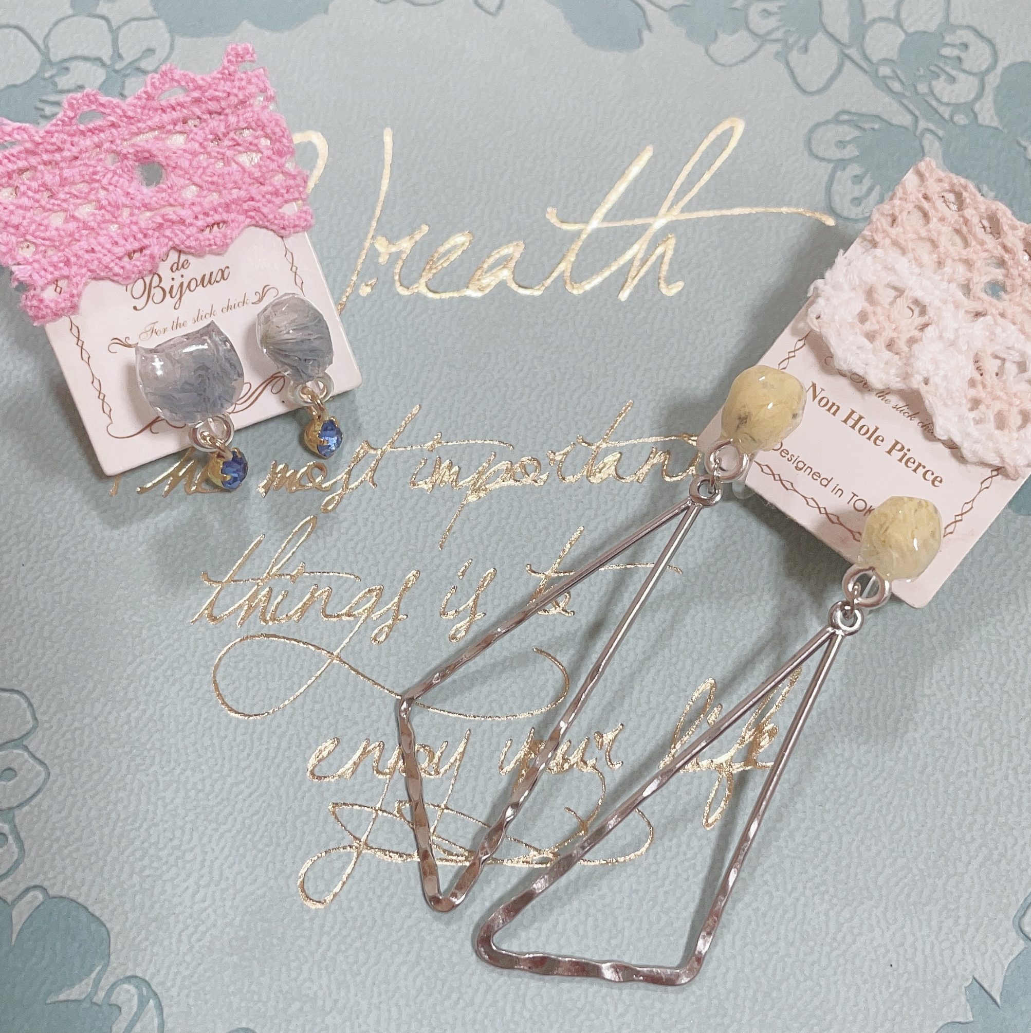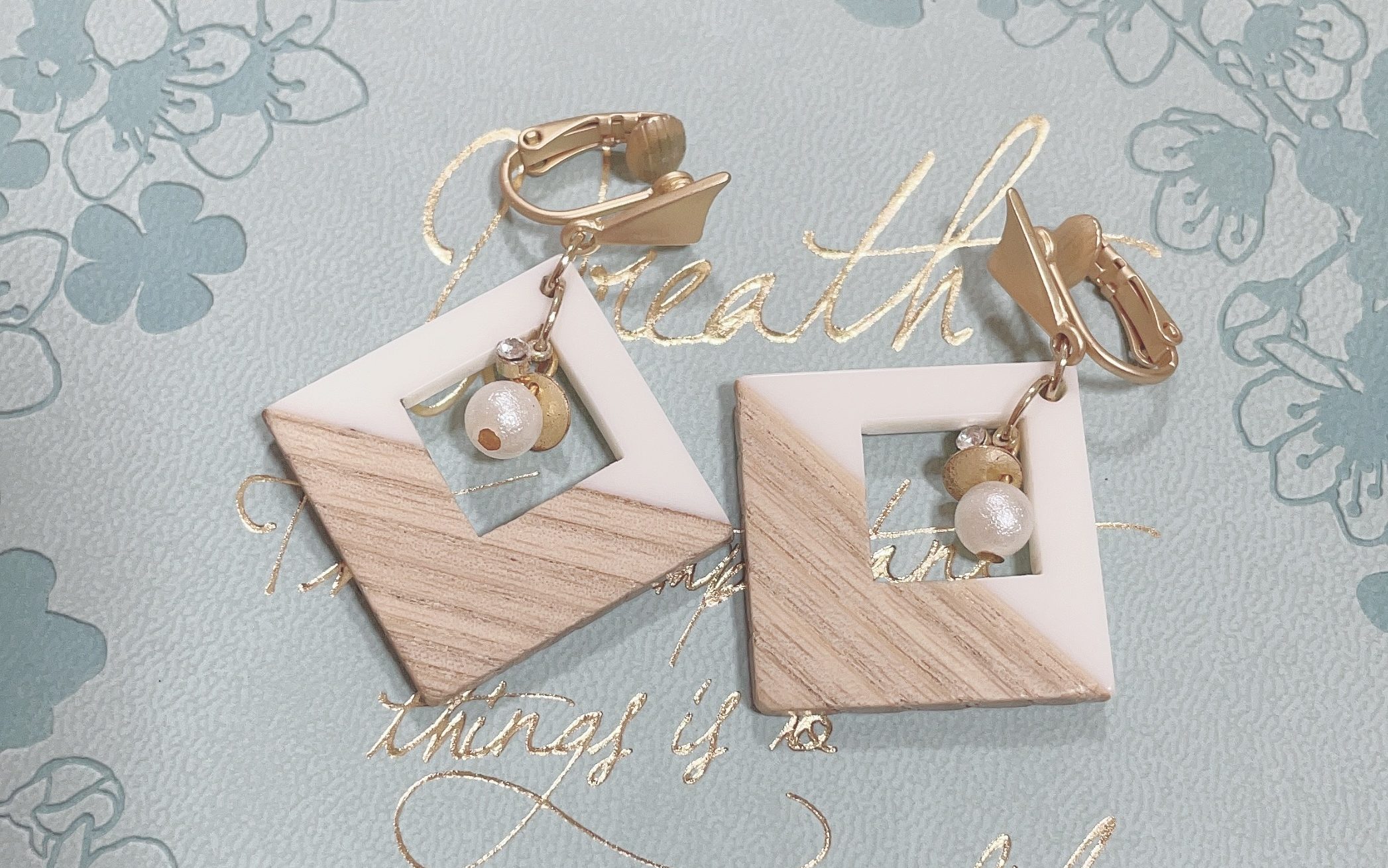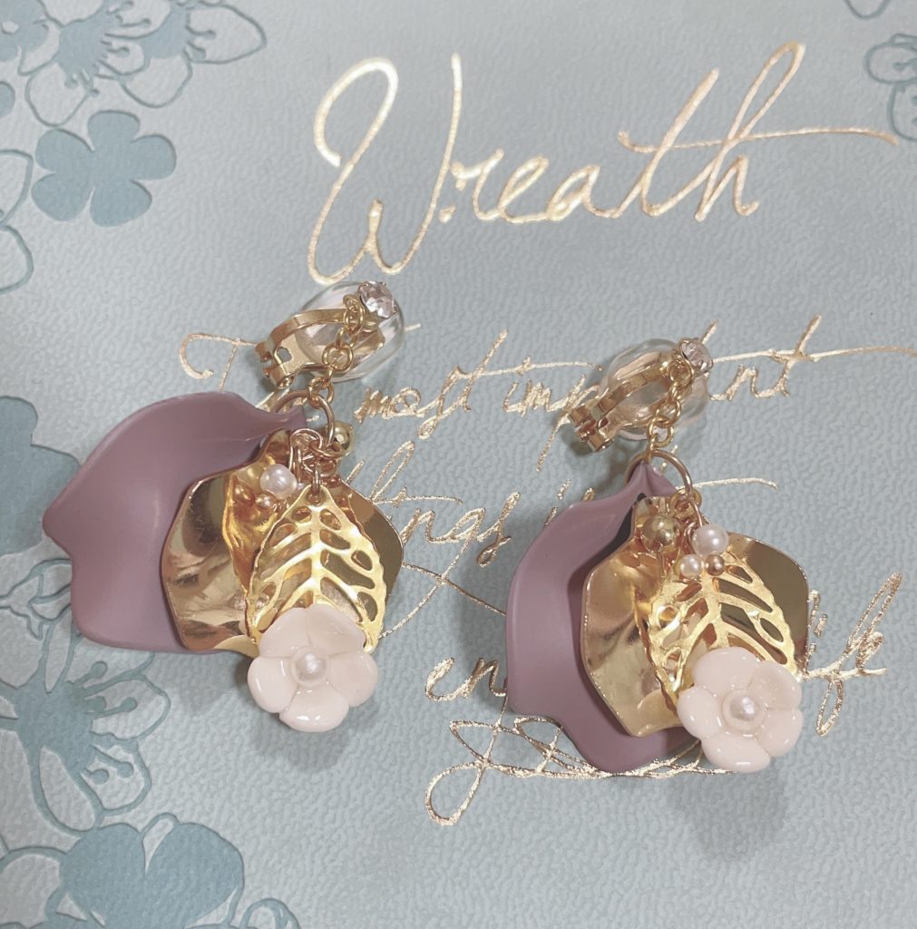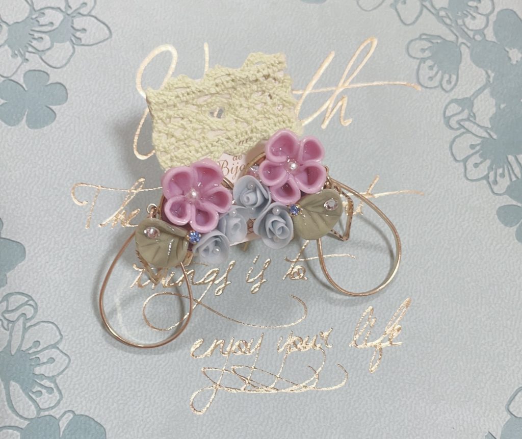 樹脂の白い小花を加えると可愛さがプラスされてこれから着けるのが楽しみです。