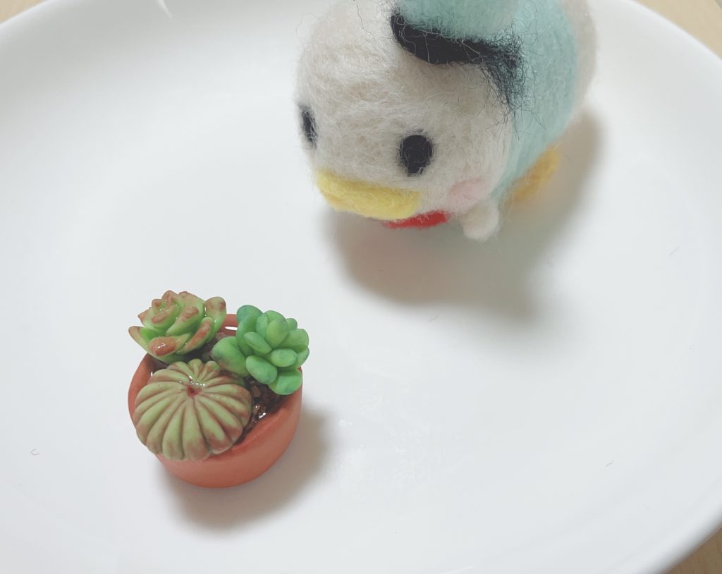 樹脂粘土で捜索した多肉植物と羊毛フェルトのドナルドダック